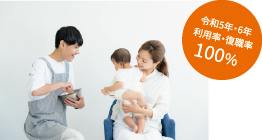 育児休業制度を利用後も復帰する社員が多く、実際の利用率・復職率も高くなっています。また育休から復帰後も子育て中のスタッフが働きやすいよう、短時間勤務期間をお子さまが小学校卒業まで延長可能です。